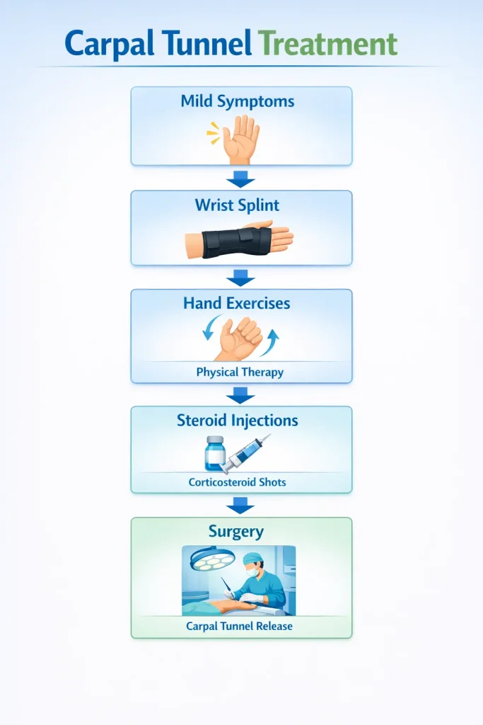 How I cured my carpal tunnel – a question many patients search for – almost always involves one of three paths: dedicated splinting and exercise for mild cases, steroid injection for moderate cases, or timely carpal tunnel release surgery for advanced cases. The key message is: do not delay. The longer the median nerve compression continues, the harder it is to fully reverse the damage.