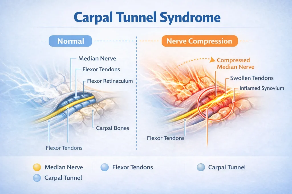 We will cover everything – from carpal tunnel syndrome meaning and anatomy, to causes, symptoms, diagnosis, and how to treat and even cure carpal tunnel syndrome. We will also answer the most common questions Indian patients ask, including what the jhanjhanahat (tingling sensation) in the hand really means and why hands feel numb in the morning.