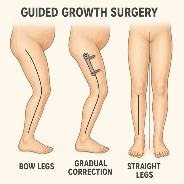 It’s natural for parents to worry when they see their child’s legs curve outward. While mild bow legs can be normal in toddlers, persistent or worsening deformity after age three often signals an underlying problem. The good news is that modern techniques like guided growth surgery provide a safe, minimally invasive way to correct bow legs while children are still growing.
