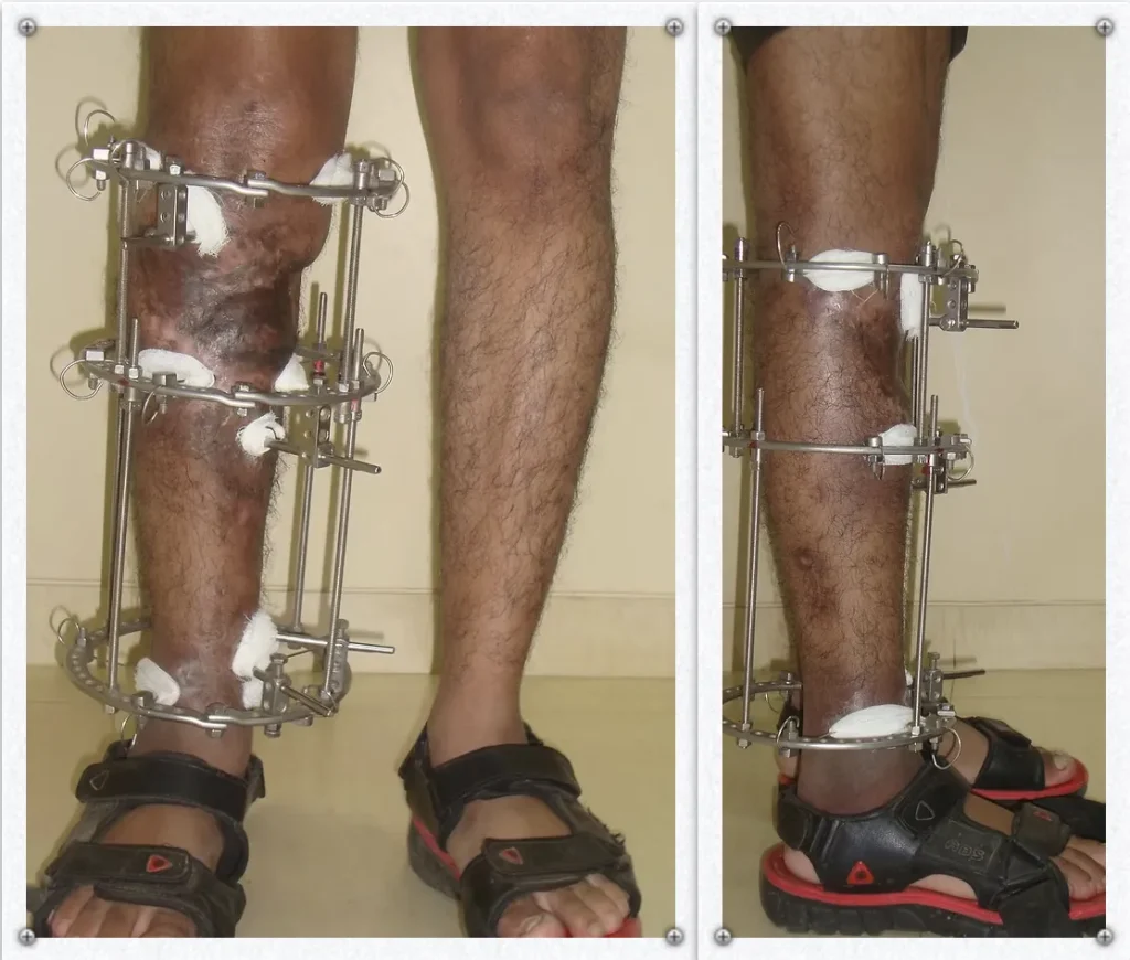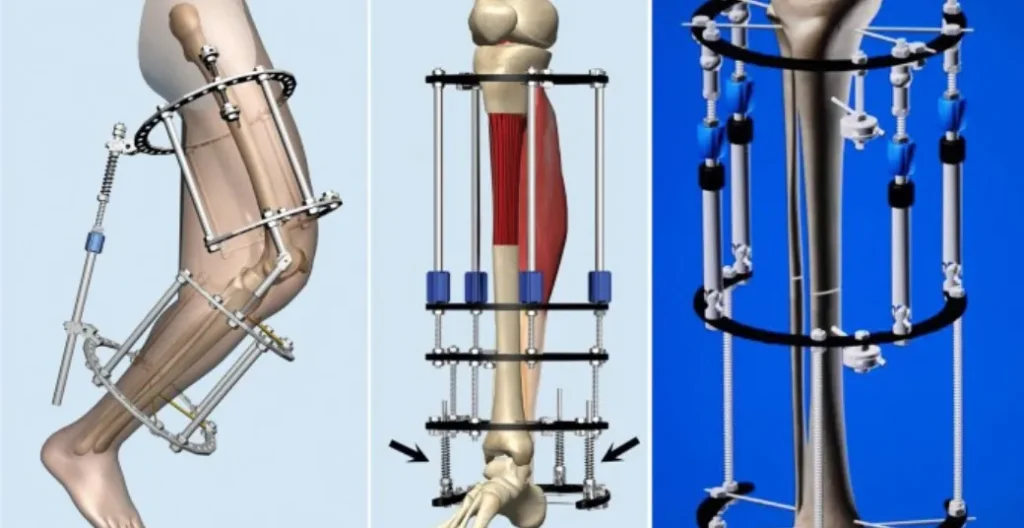 Ilizarov surgery is an orthopedic procedure that uses an external fixator called the Ilizarov apparatus to lengthen or reshape bones. It is commonly used to treat complex fractures, limb length discrepancies, bone deformities, and non-unions (bones that fail to heal). Developed by Dr. Gavriil Ilizarov, the surgery involves gradually moving bone segments apart to stimulate new bone growth through a process called distraction osteogenesis.