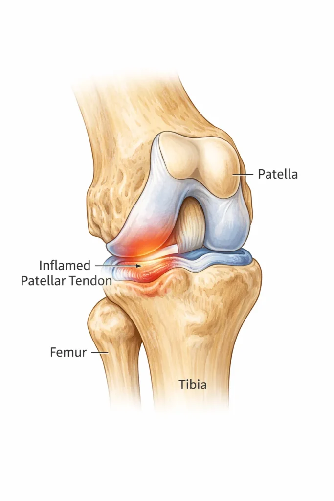 Often called jumper’s knee, this condition involves inflammation of the patellar tendon.