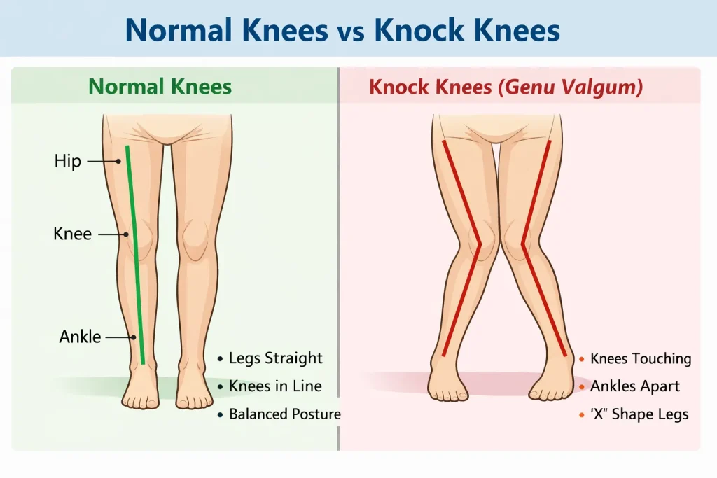 Now, don’t worry. Seeing knock knees does not always mean something is seriously wrong. In children, it can even be a normal part of growth. But in teenagers and adults, knock knees can sometimes cause pain, balance problems, and extra stress on the knee joint.