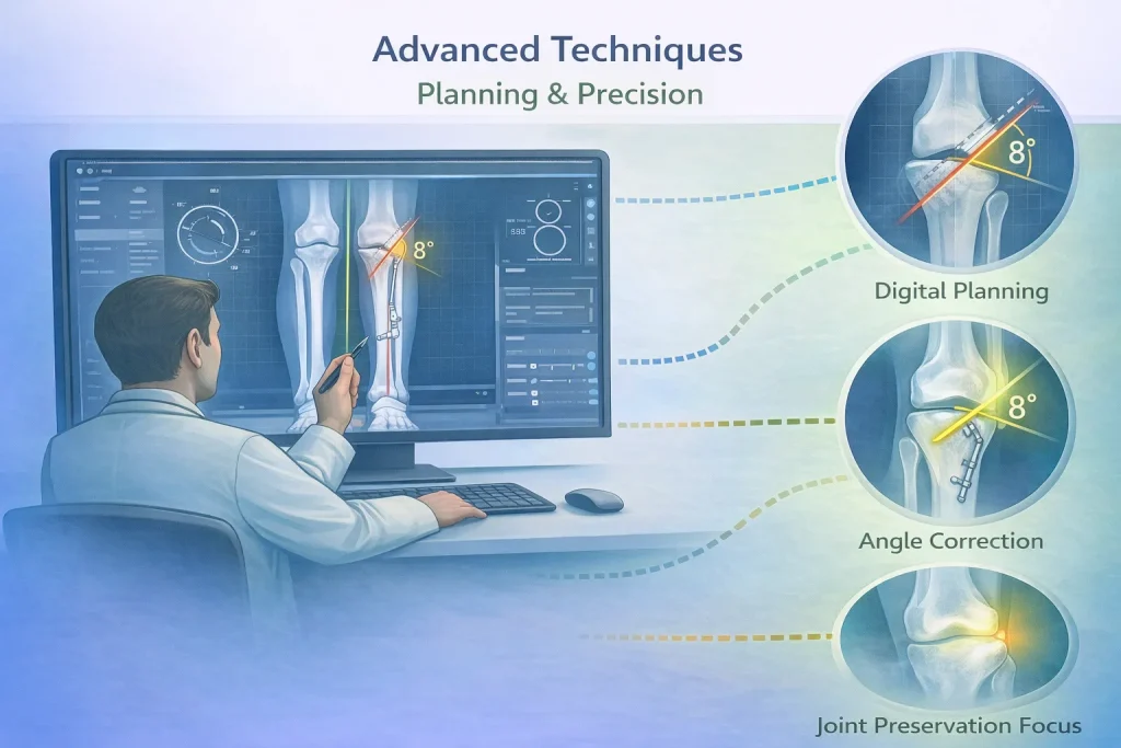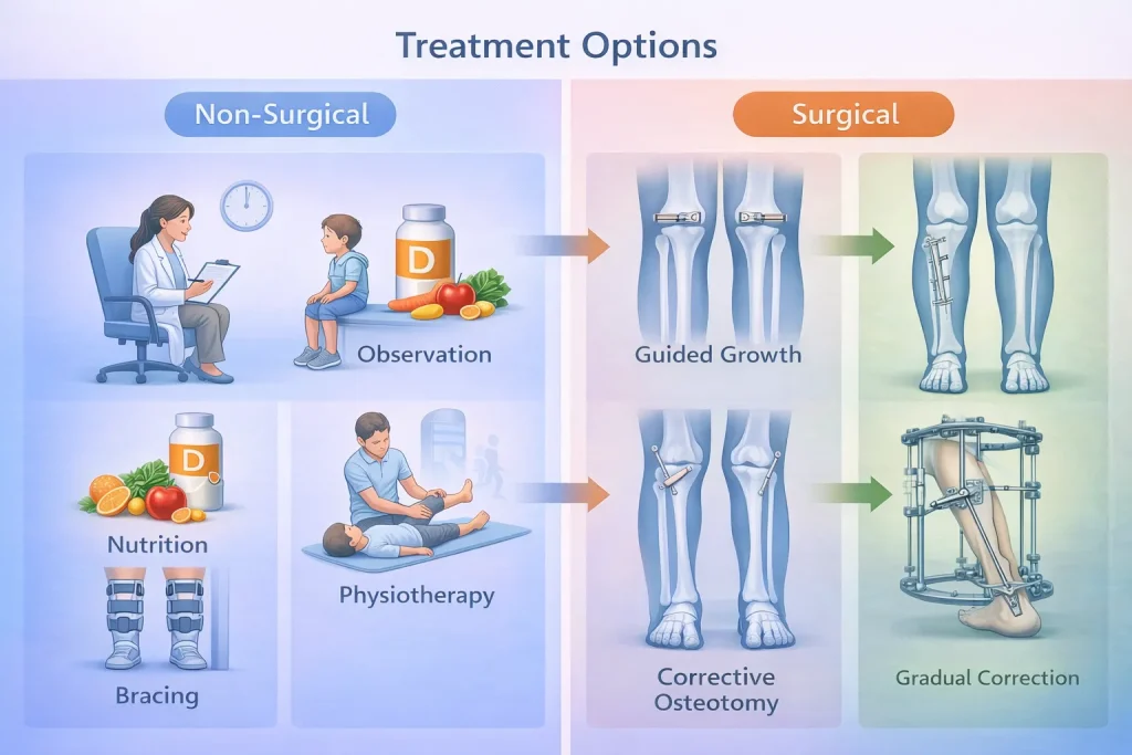 Dr. Divya Ahuja performs a detailed deformity analysis using clinical examination and full-length standing X-rays to assess the mechanical axis. Based on age, severity, symptoms, and cause, she recommends the most effective correction method for durable results.