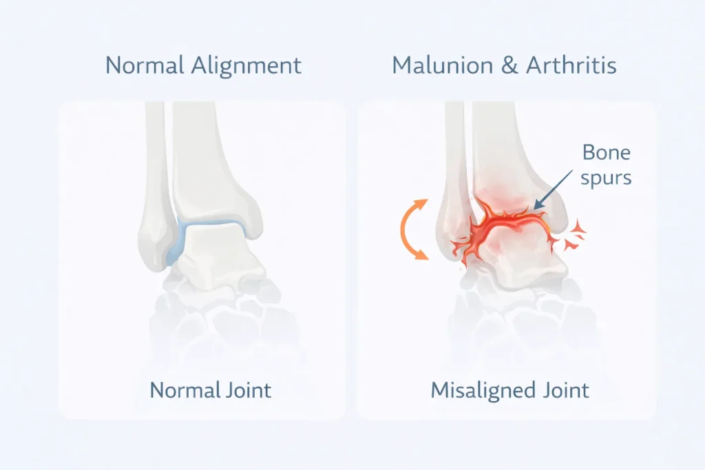 Untreated fractures can heal improperly, leading to ankle instability, chronic pain, and arthritis. Proper alignment and treatment are essential to maintain joint function.