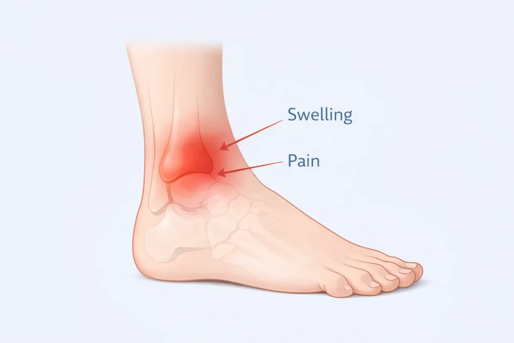 In severe fractures, visible deformity or inability to stand may occur. Persistent pain after an ankle injury should always be evaluated with imaging.