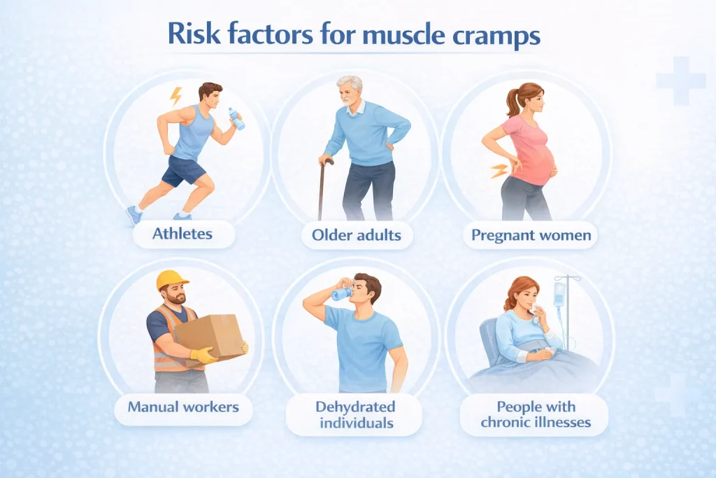 Some people get muscle cramps far more often than others. Those at elevated risk include: