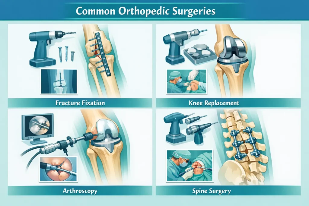 Orthopaedic operation types vary widely depending on the problem. Common ortho surgery names and procedures include: