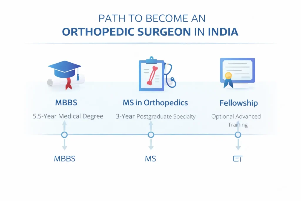 One of the commonly searched topics – especially among medical students – is how to become an orthopaedic surgeon. Here is the training pathway in India: