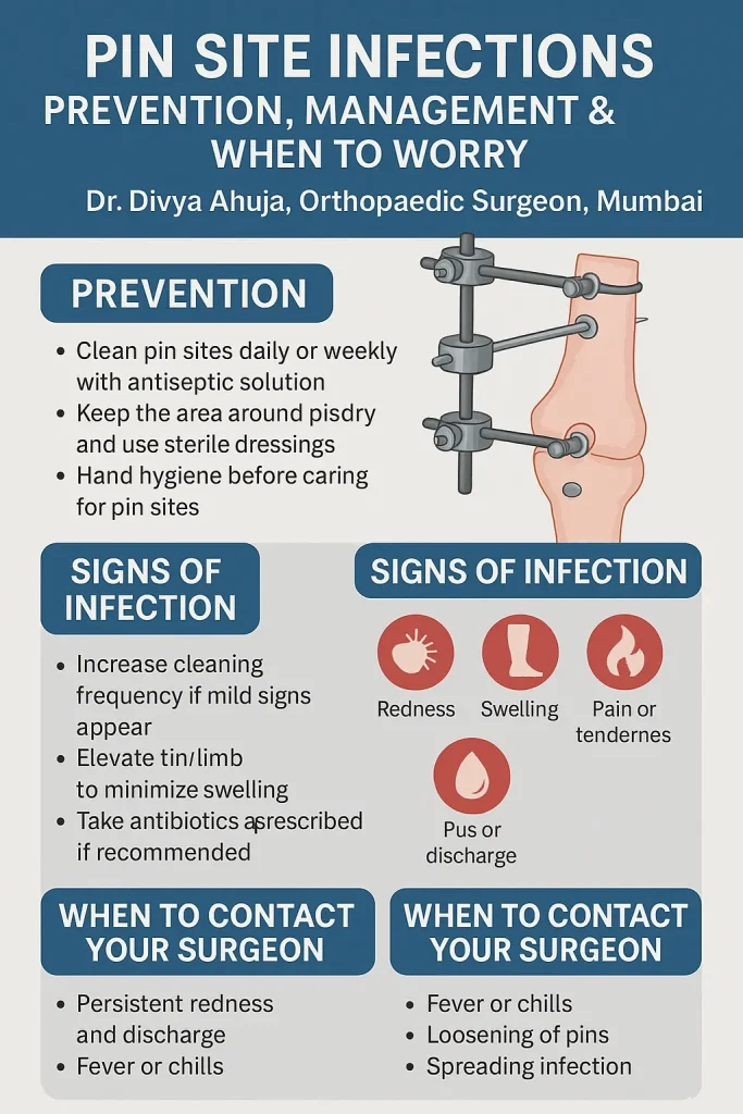“Pin site infections are preventable in most cases. Consistent hygiene, early reporting, and nutritional support ensure safe bone healing. Never ignore minor redness-act early, and your recovery remains smooth.”