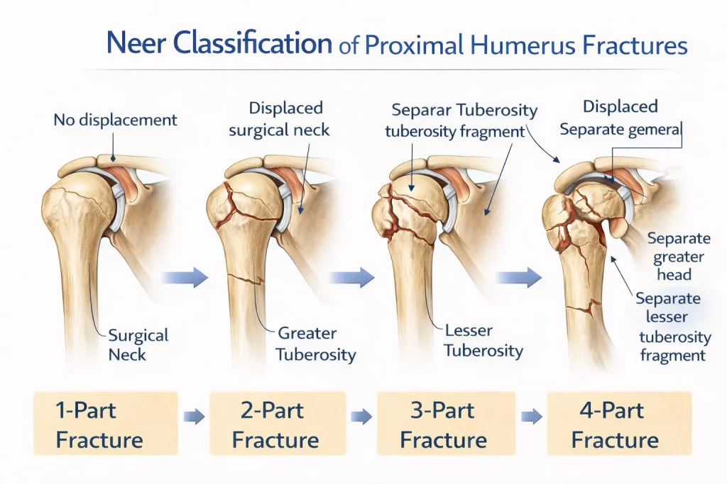 Proximal humerus fractures are among the most common fractures of the upper limb, particularly in elderly individuals with osteoporosis. These injuries usually occur after a fall onto the shoulder or an outstretched arm, but they can also result from high-energy trauma such as road accidents or sports injuries.