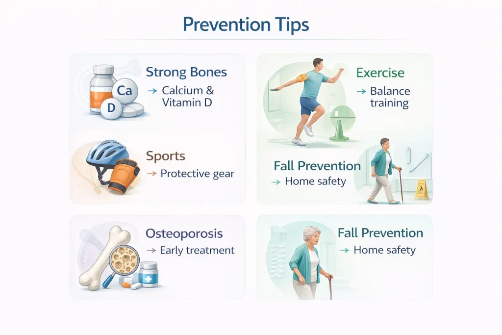 Although not all injuries can be prevented, some measures reduce fracture risk.