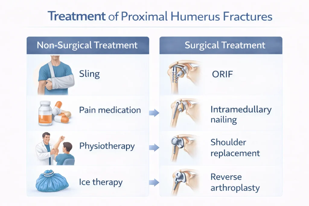 Proximal humerus fractures are common shoulder injuries that can significantly affect arm movement and daily activities. While many fractures heal successfully with non-surgical treatment, severe injuries may require surgical intervention to restore proper shoulder function.