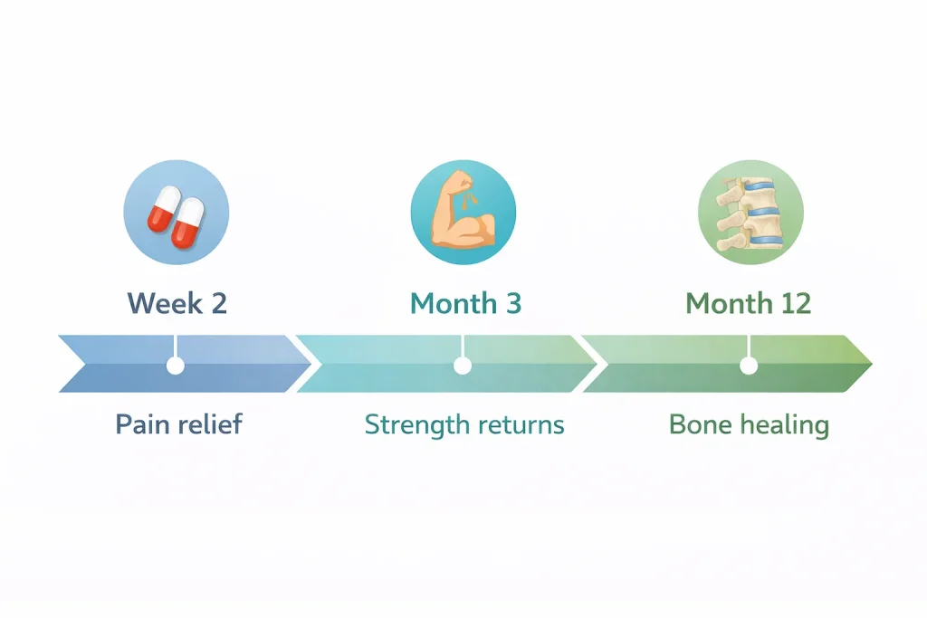 - 6 to 12 months: bone healing and full spine recovery