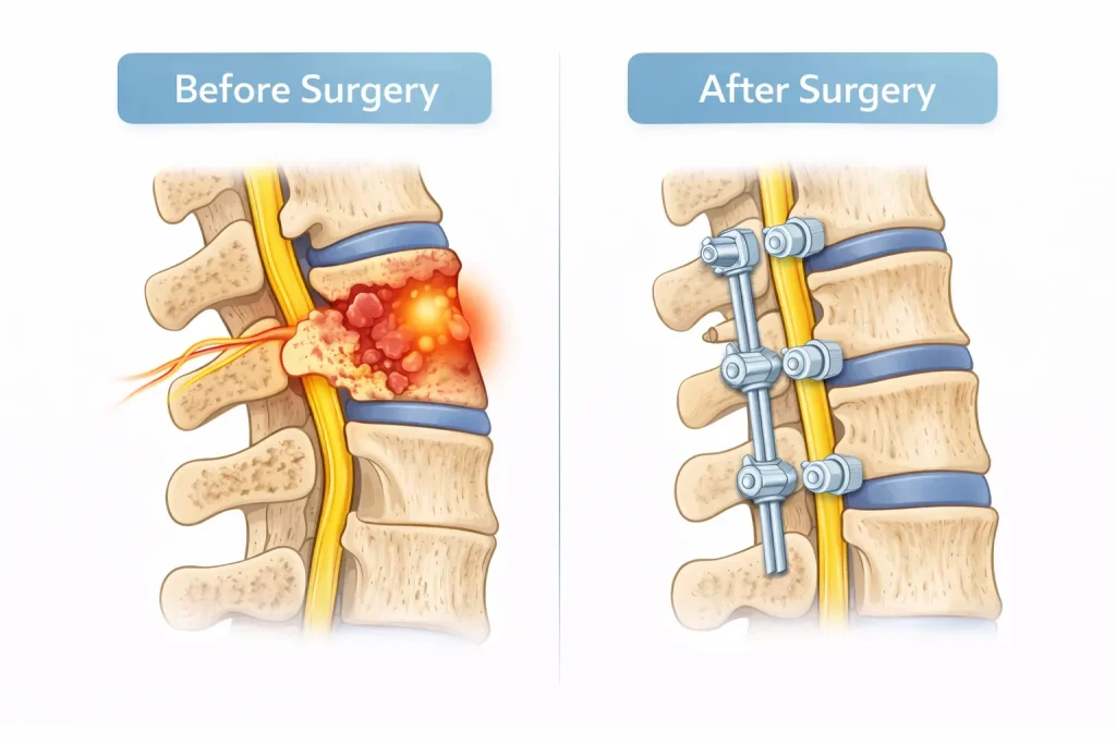 Then it is important to consult a doctor and do proper tests, like an MRI. Think of spinal TB like a crack in the foundation of a building. Small cracks can be repaired early. But if ignored, the structure becomes unsafe. Early care makes recovery faster, safer, and smoother.